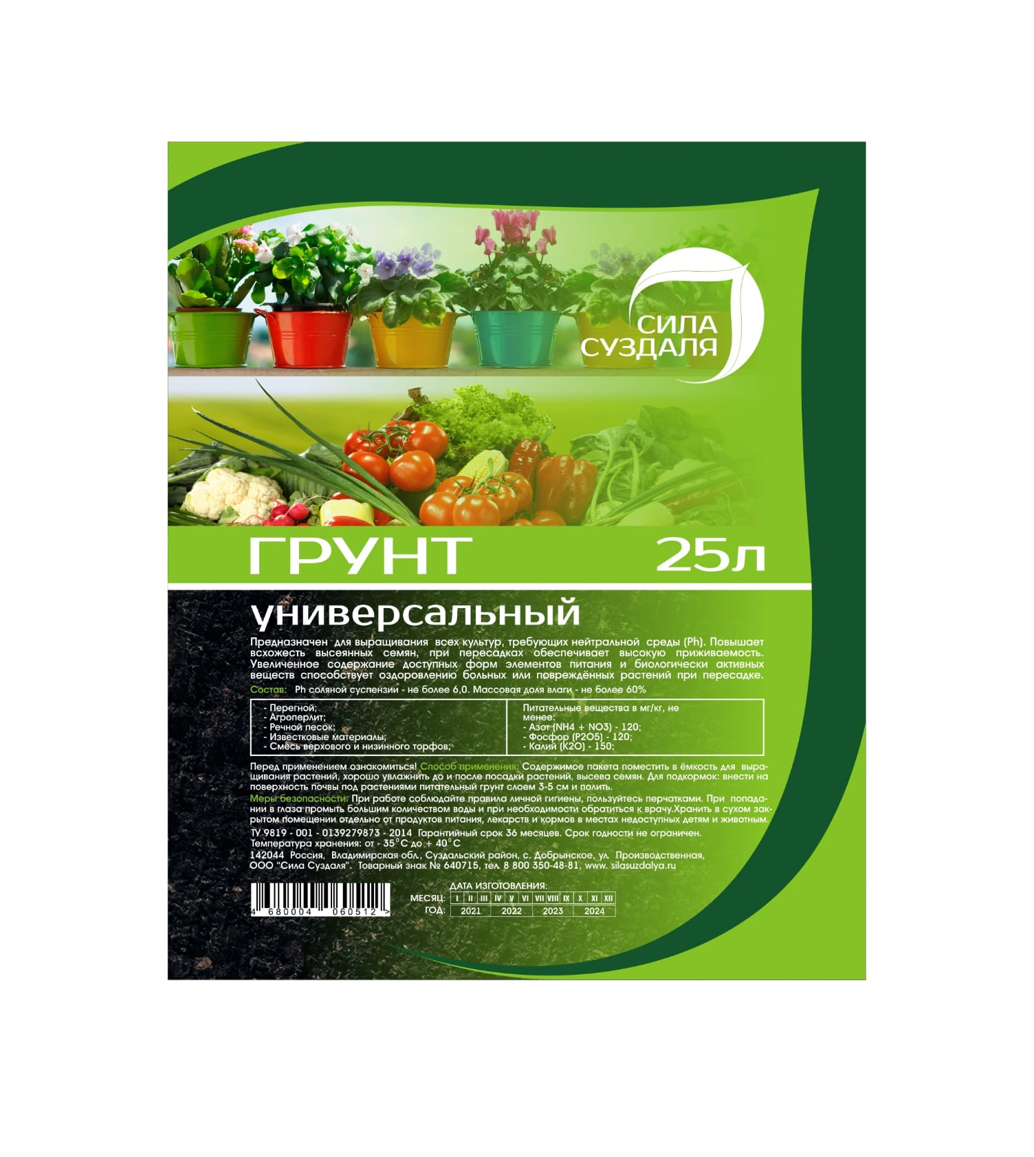 Состав: перегной, агроперлит, речной песок, известковые материалы, верховой торф, низинный торф